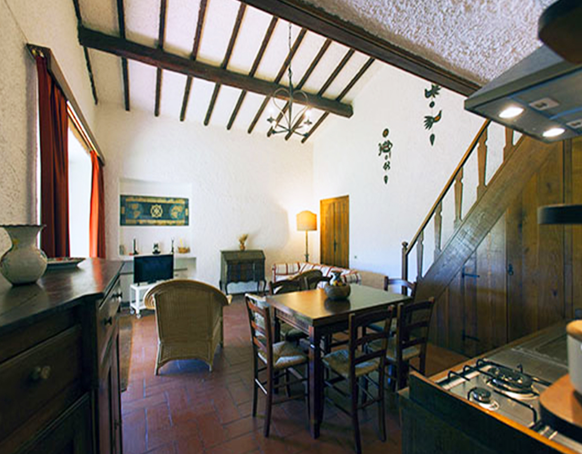Il "Casale Mirella E" è un Appartamento nell'ala Est del "Casale Mirella", un tipico Podere recentemente restaurato. L'appartamento ha una superficie di circa 75 mq e si sviluppa su due piani.